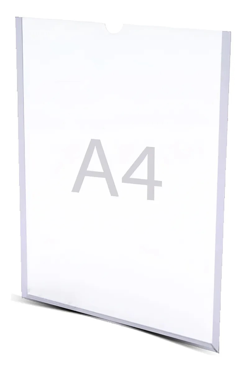 Display Porta Folha A4 Parede, pode ser usado na vertical ou horizontal.