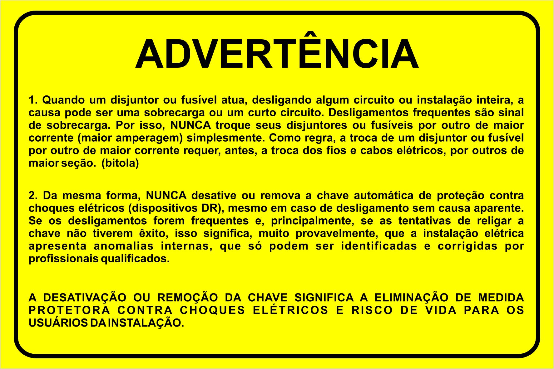 Etiqueta - Advertência - Disjuntor ou Fusível