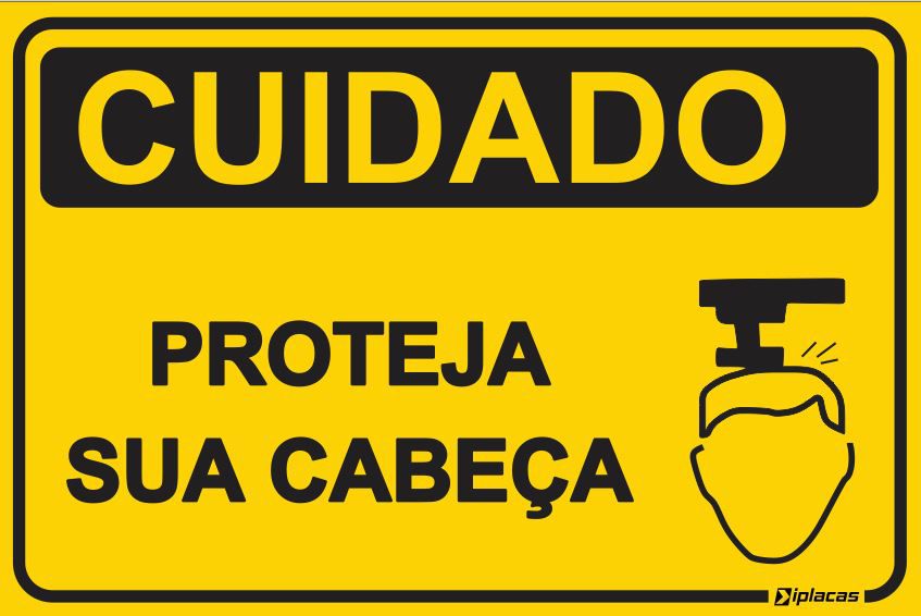 As placas de sinalização de segurança CUIDADO - Proteja sua Cabeça