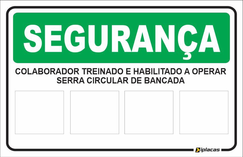 As placas de sinalização de segurança Placa SEGURANÇA - Colaborador treinado e Habilitado a Operar Serra Circular de Bancada